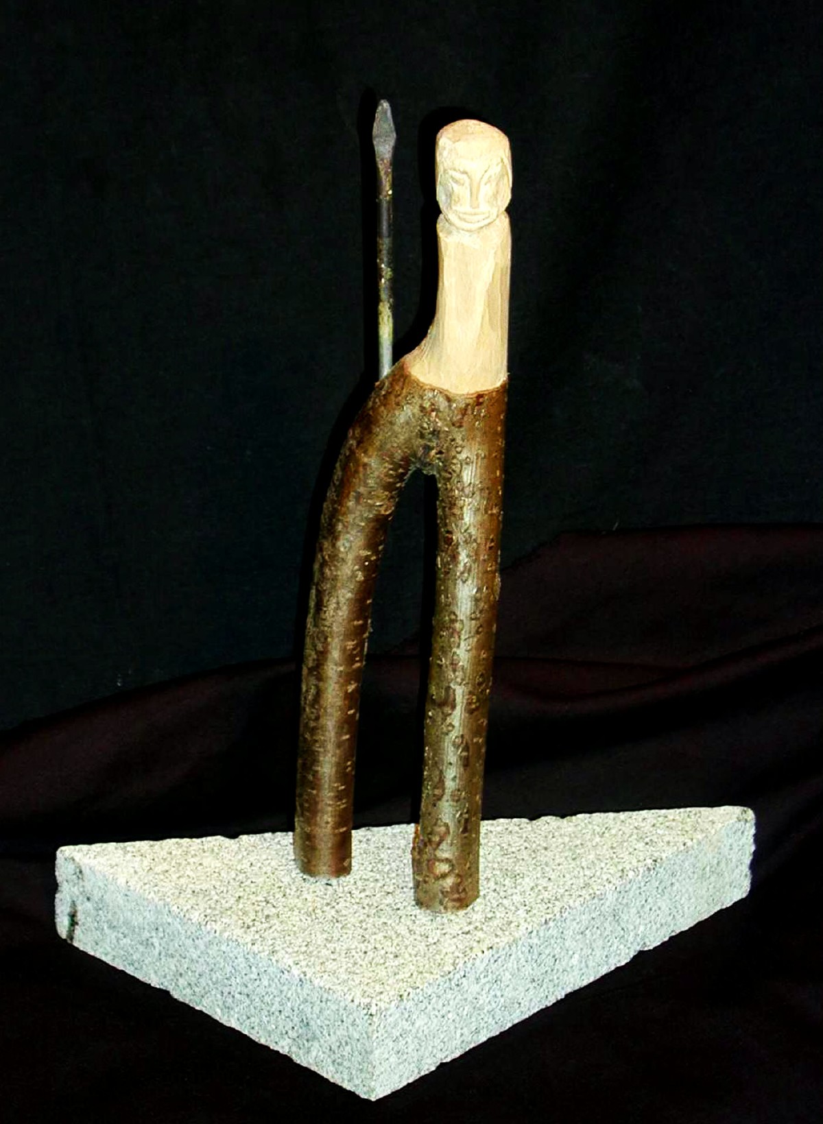 "Der Krieger" - 20x20x30cm - Haselnuss, Stahl geschmiedet, Granit