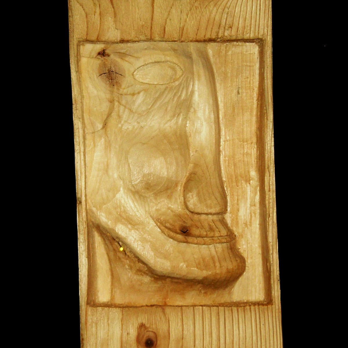"Schädel" - 20x20x30cm - Stein, Edelstahl, Eiche